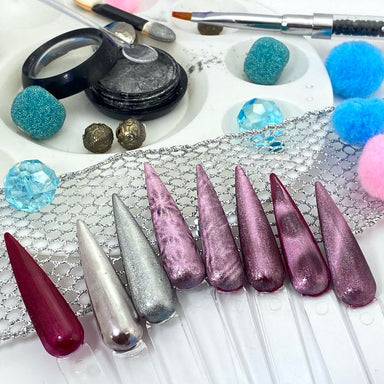 Pro-tip: Always use magnets designed specifically for cat eye gels. Regular magnets aren't strong enough to pull the magnetic powder into those gorgeous shapes.