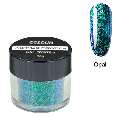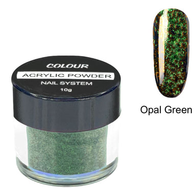 Acrylic and Dipping Acrylic Colour Powders are available in Opal (Blue) and Opal Green.