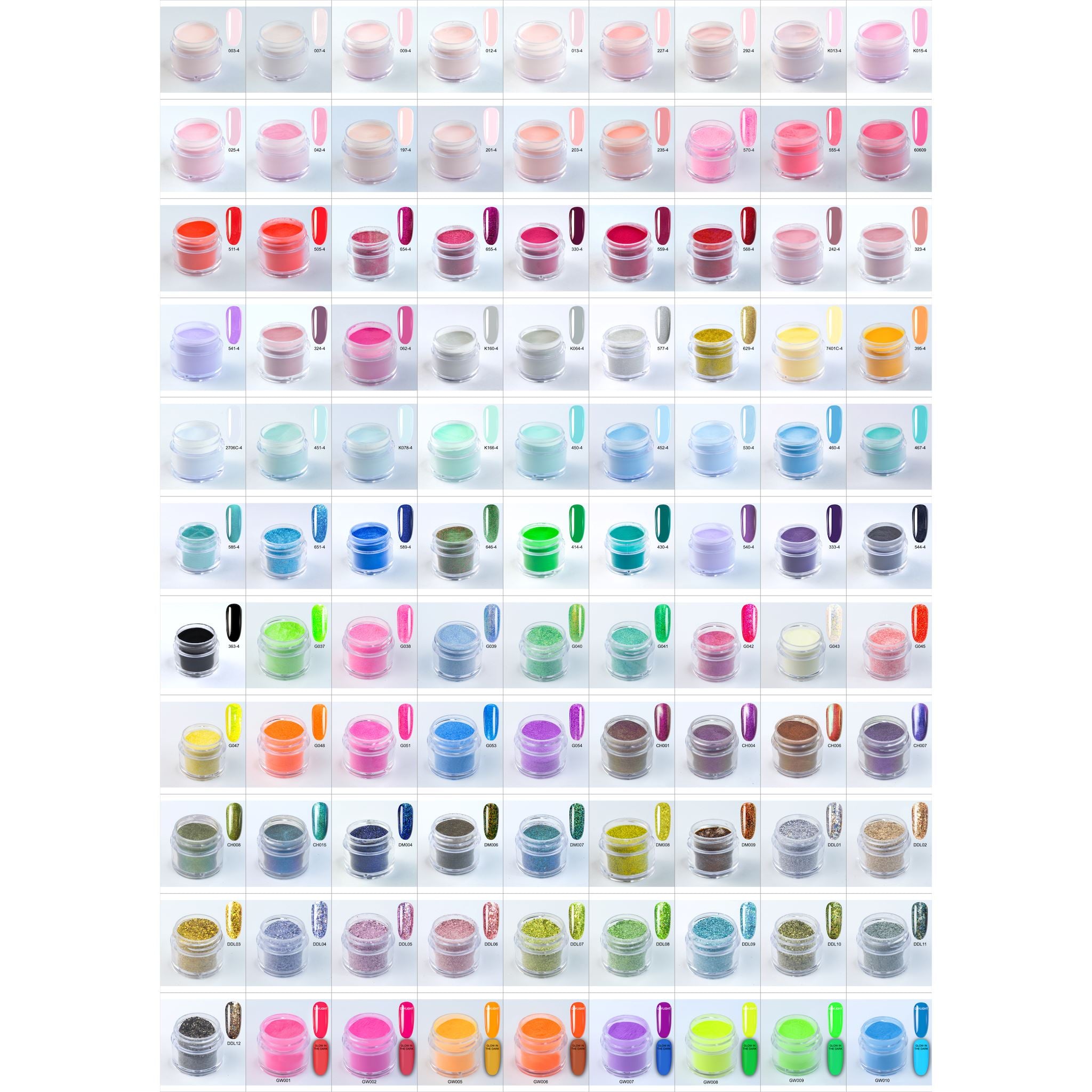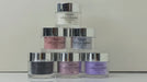 The powders are very fine and highly pigmented giving a great coverage on all nail services combining acrylics: Liquid and Powder, gels, gel polish, wraps, dipping systems etc...