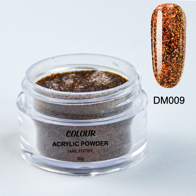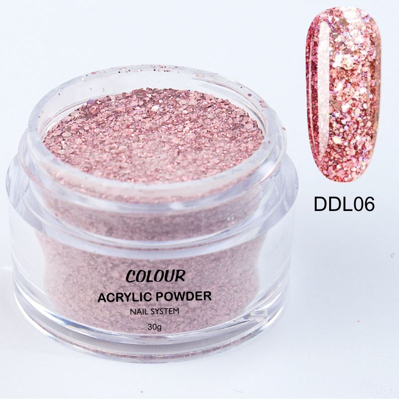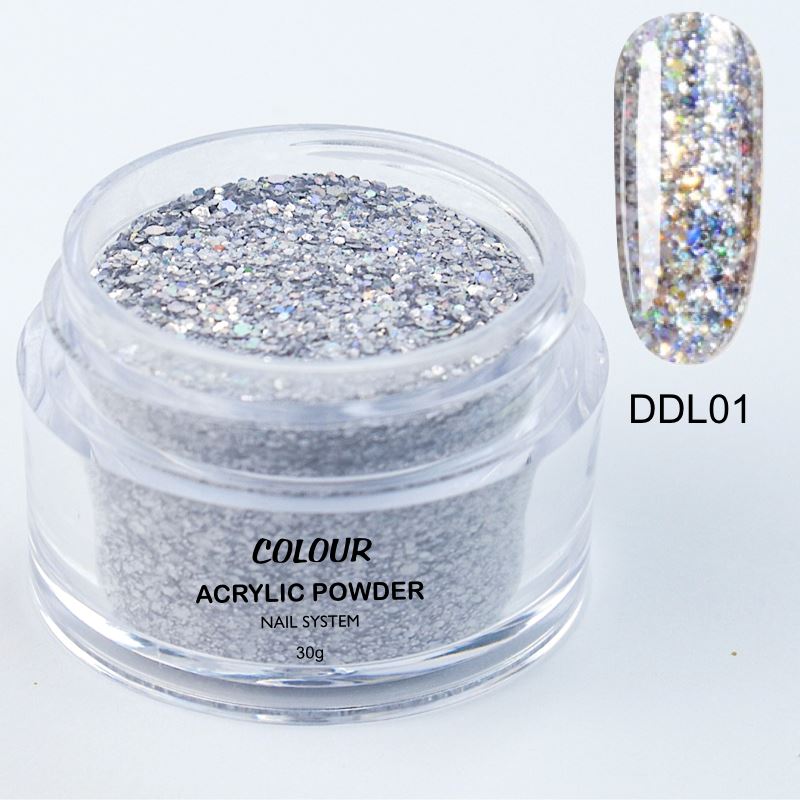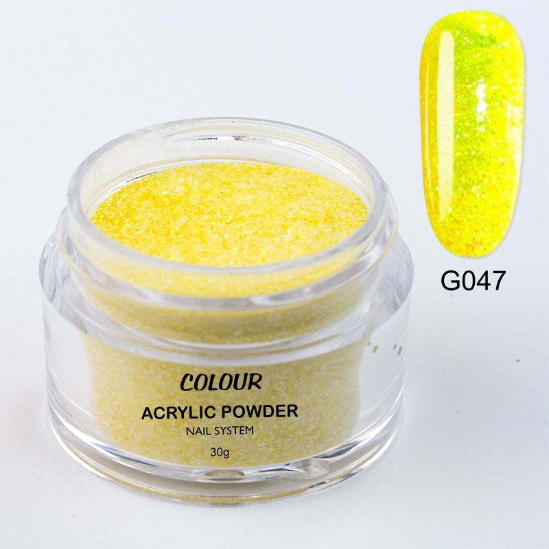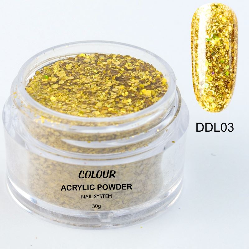 These vibrant acrylic colours can be used with your favorite Nail Liquid to cover the nails and also to create intricate nail designs. The feel of the bead is varying with the concentration of glitters, shimmers, chromes, bigger or smaller granulation in each individual colour. Your mix ratio will need to be re-adjusted accordingly. The drying time will also differ with some colours for the same reason as the concentration of the glitters, shimmers, chromes will sets slower.