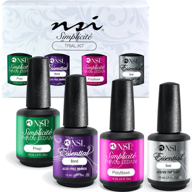 The Simplicité TRIAL KIT contains the essential bottles you need for our Acrylic Gel Dipping System. Kit Contents: 4 Bottles (No powders included) ...