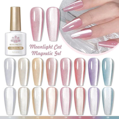Experience exquisite colours with the Moonlight Cat Eye Magnetic Gel Born Pretty. Different effect depending on the light and the background colour...
