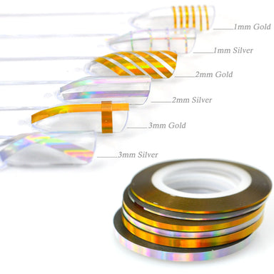 Quality Nail Art Gold/Silver Striping Tape Roll 1mm or 2mm. Length 20m, self-adhesive, no glue is needed, easy to use.Apply a Top-Coat for a best ...