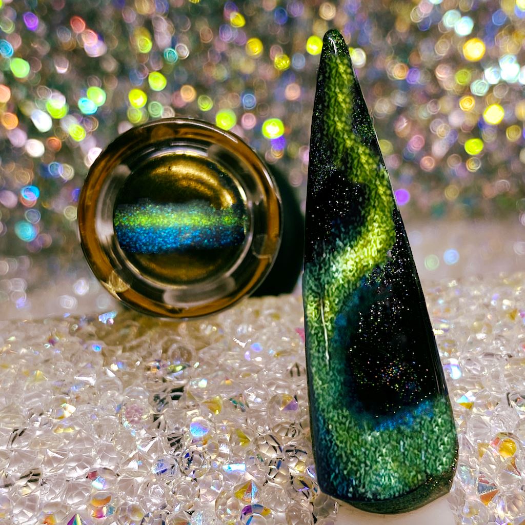 Beautiful effects with this magnetic gel polish I bought the opal stunning colour over black polish, but I think it would look good over different backgrounds.