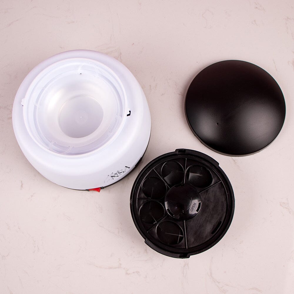 2. Turn the Black Lid anticlockwise and lift it off to reveal the clear plastic bowls inside. (1 is a spare leave it to the side)
