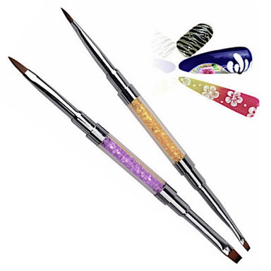 Double Ended Brushes with Crystal Rhinestones Handle. A great brushes for Acrylic and Gel design application.Comfortable grip, that make applicatio...