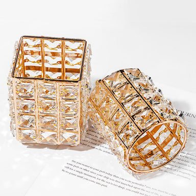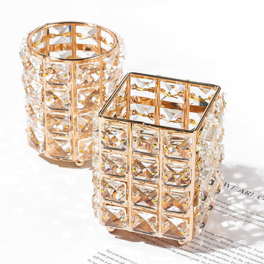 Beautiful Crystal Storage Holders Round and Square With Metallic Gold Frame.