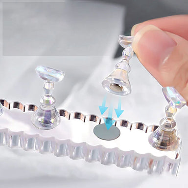 Crystal Magnetic Stand used for practicing nail art. The tip holder has a magnetic bottom to allow it to stand up.Set of 1 crystal base + 5 tip st...