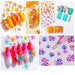 These self-adhesive stickers showcase vibrant, multi-coloured flower patterns with embossed detailing that catches light beautifully, creating a professional salon-quality finish at home.