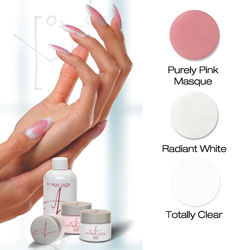 + 3x 40g Attraction Acrylic Nail Powders(Purely Pink Masque, Radiant White and Totally Clear)