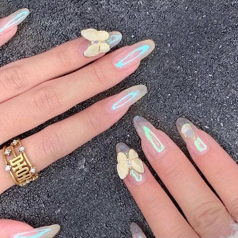Nail art Aurora Chrome Mirror Pigments offer a straightforward application process, resulting in a glossy, aurora effect.
