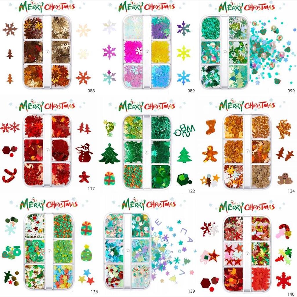 This 6-Grid Tray offers intricate Christmas-themed nail art designs such as snowflakes, Christmas trees, gifts, Santas, stars, and more. The thin slices have been crafted for precision and easy application.