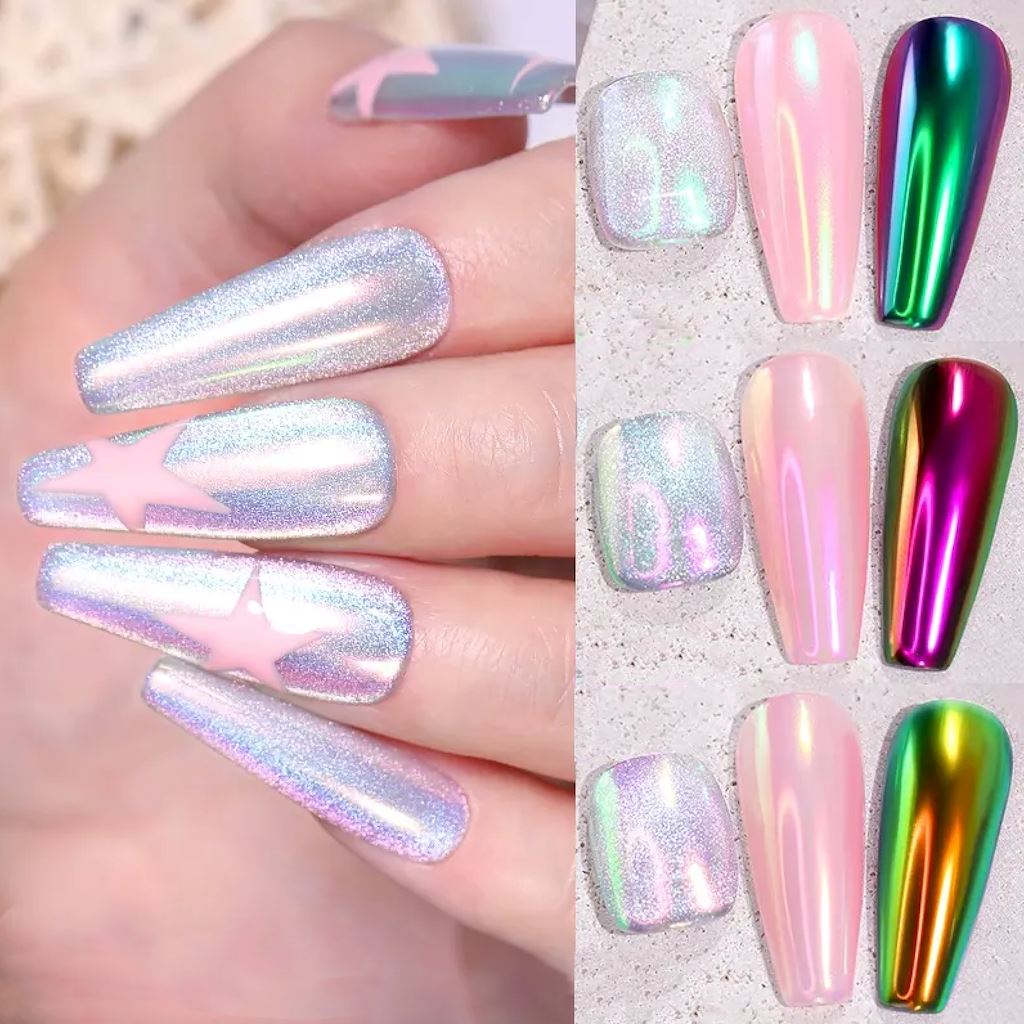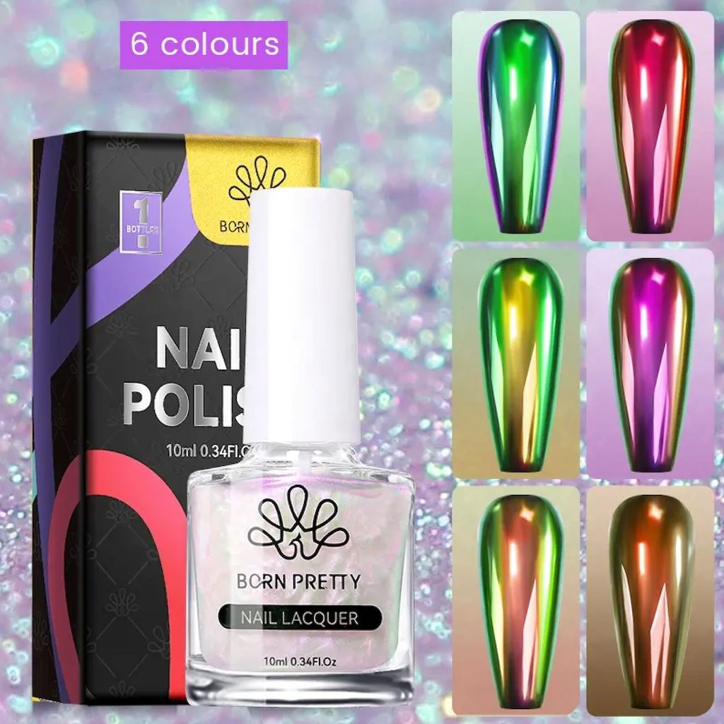 Achieve a stunning reflective chrome nail finish with these beautiful Aurora Mirror nail polishes.