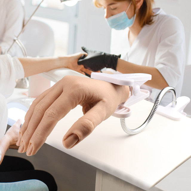 Simply clamp one end to the edge of your table and the other to your silicone hand. Now you’re ready to take over the nail world!