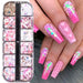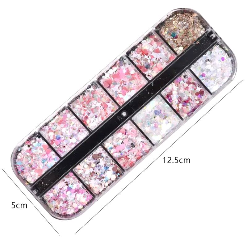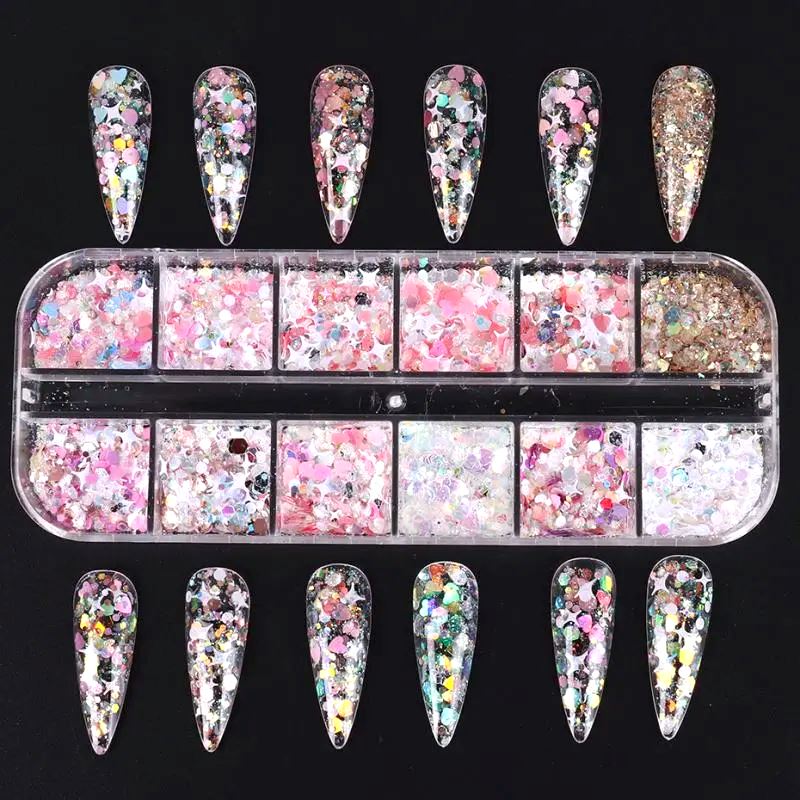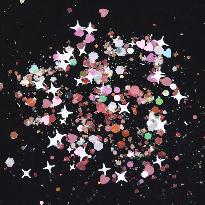 Mixed Colourful Hearts, Stars, Hexagon Sequins Flakes Nail Art Decoration Pink Series Tray.