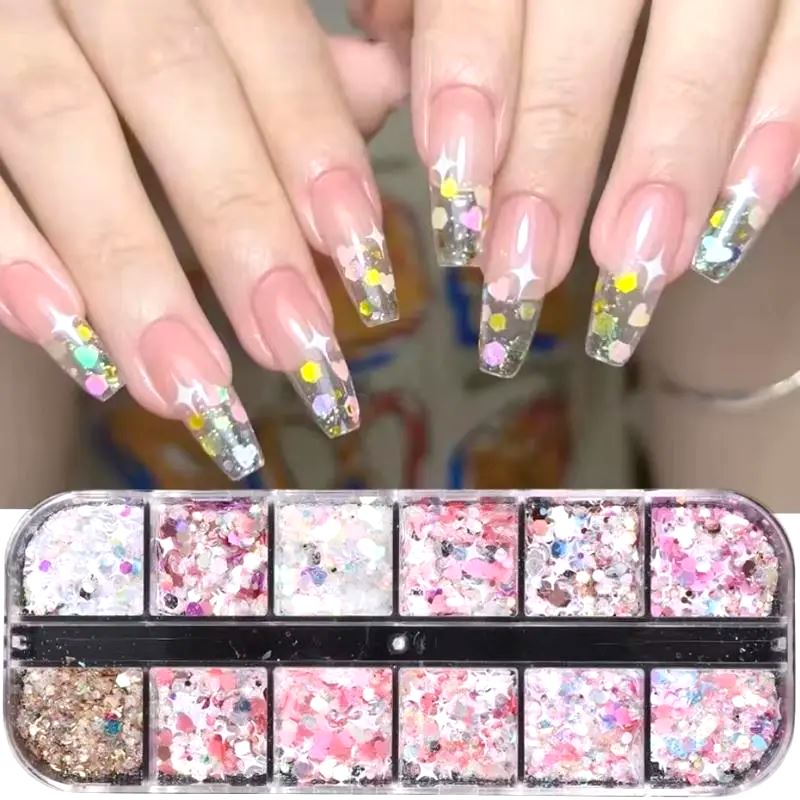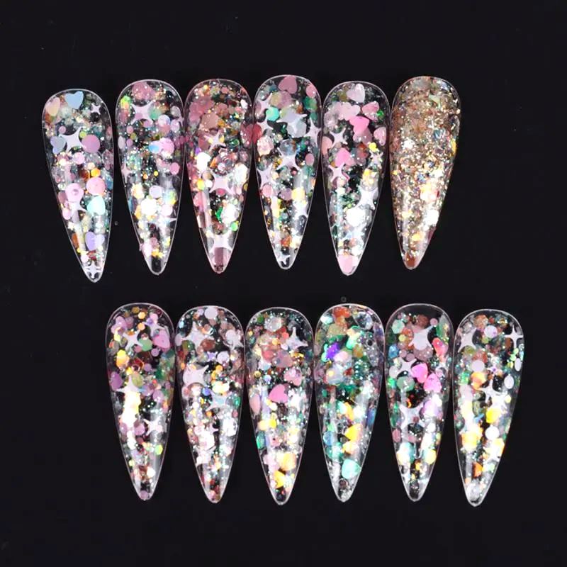 Easily apply these glitter flakes to your nails for stunning nail art creations.
