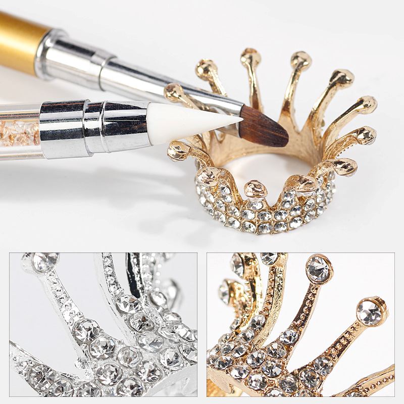 Crown Shape Brushes Holder Stand Silver and Gold.