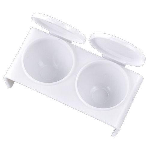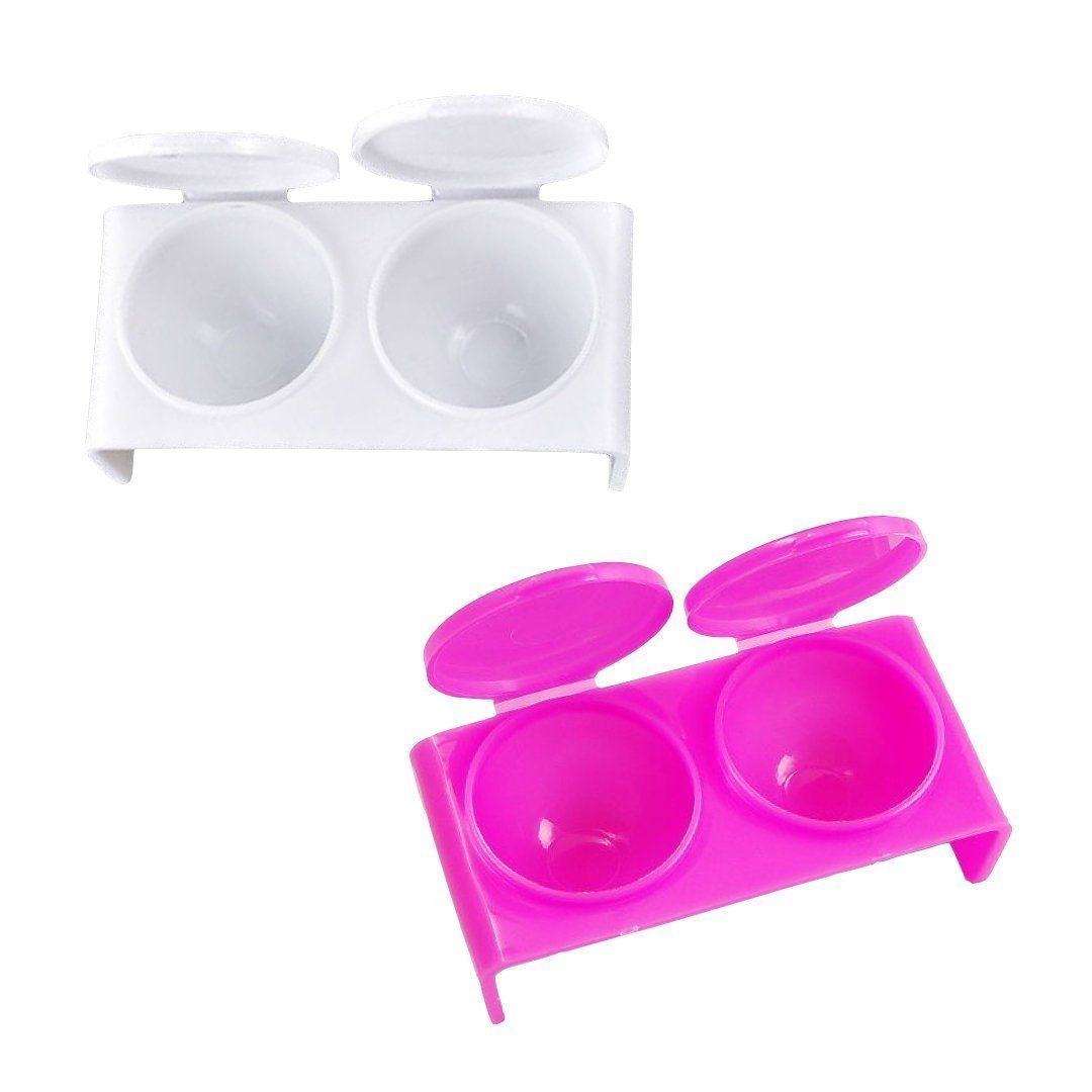 This dual dish holds enough liquid in one side, to do a full set of nails. The other side I found the small container of powder sits in it perfectly.