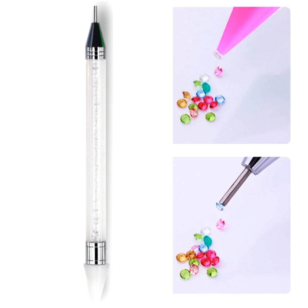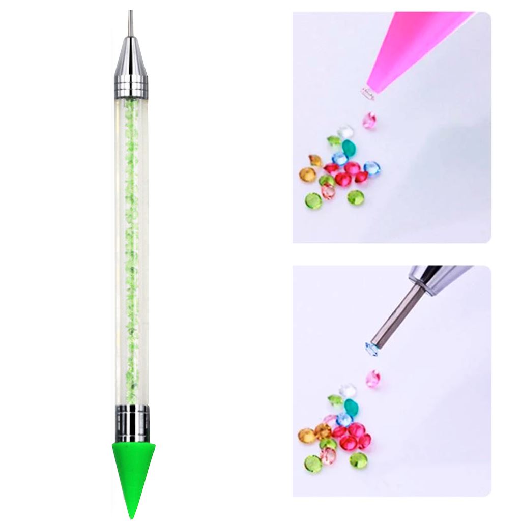The coloured side is fantastic to pick up any sized stone with, the other side is more for the exact right size but it double as a tool to help position the rhinestones in the perfect spot on nails.