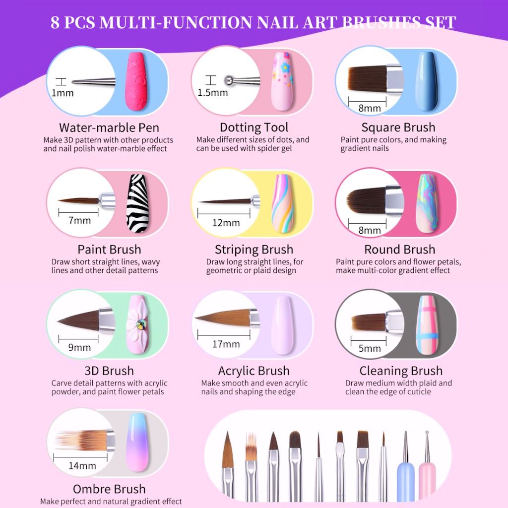 Nail Art Design Brushes Set of 8pcs. Great Brush for Nail Artists!
