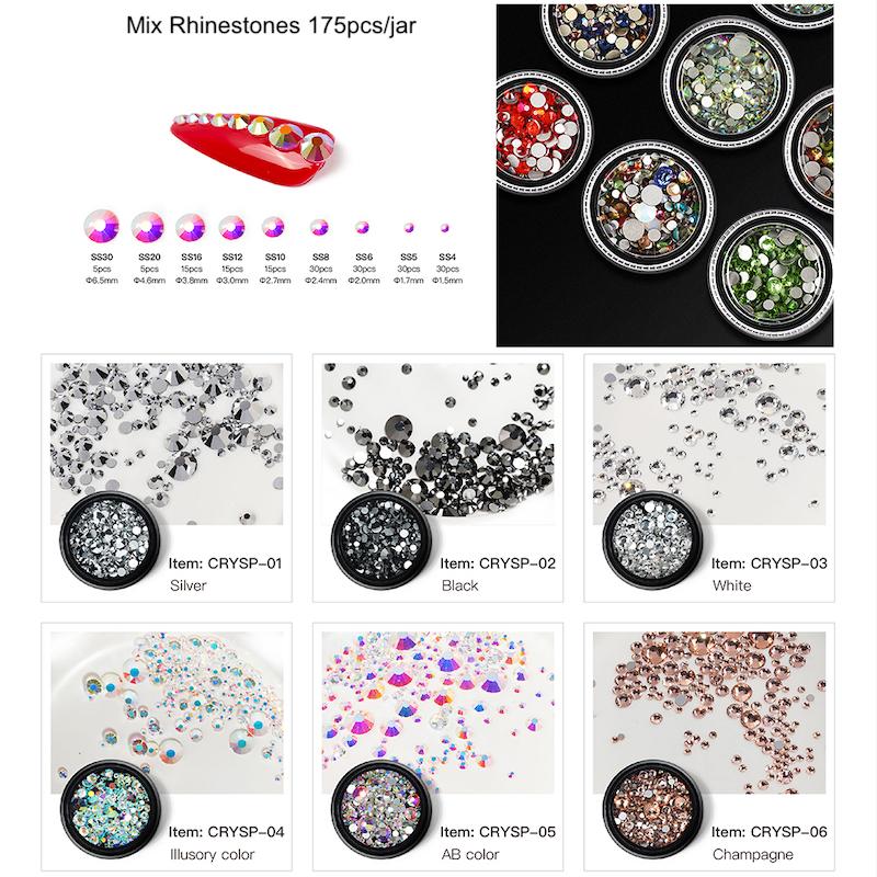 Elevate your nail art game with 175pcs of dazzling mixed-size rhinestones. These high-quality gems are the perfect touch for any design, adding dimension and elegance to your manicure. Perfect for both personal and professional use, these rhinestones are a must-have for any nail artist.
