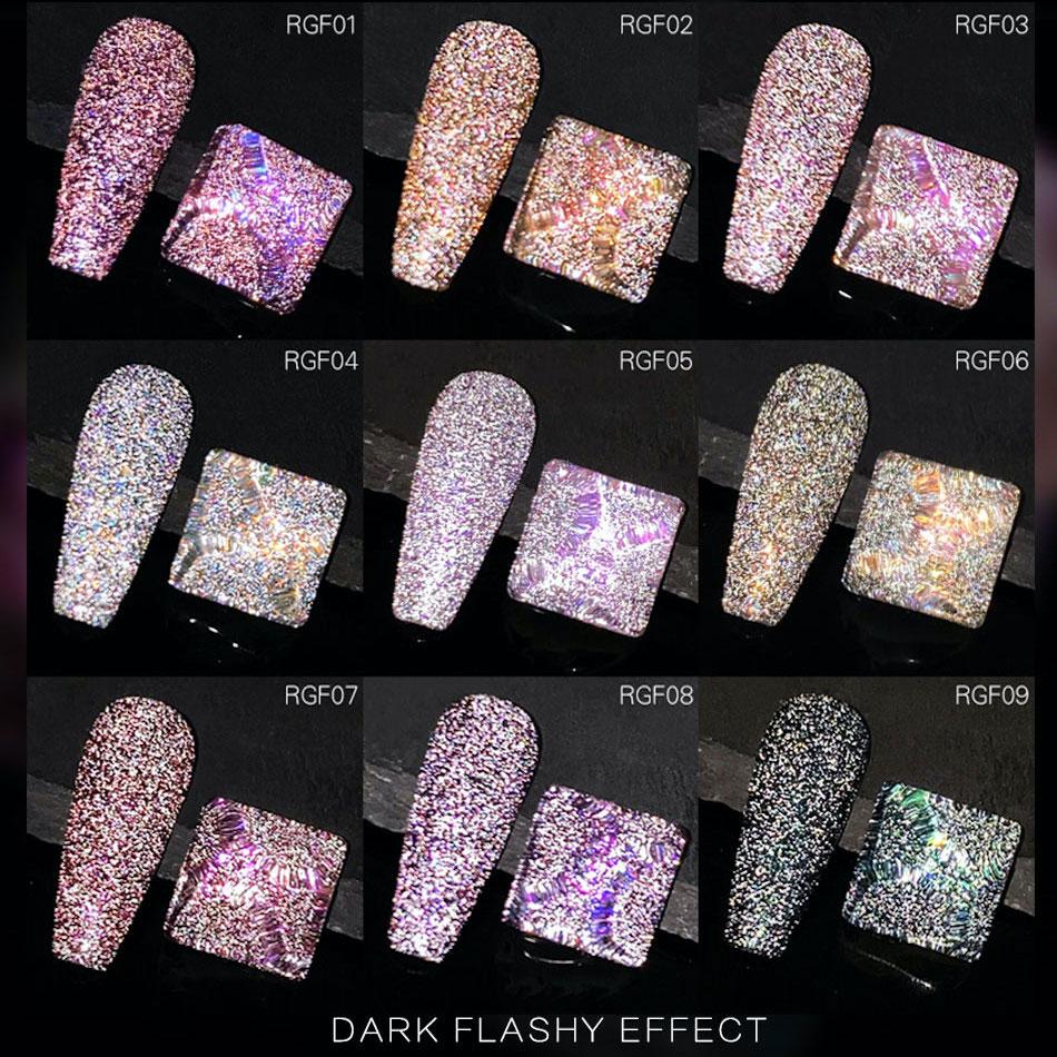 Reflective Glitter Flash Gel Polish are Amazingly Reflective with a Dark Flash Effect!