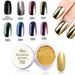 Apply a Topcoat that is leaving a tacky residue layer onto the nails after the cure (eg. Essential Seal). For the Metallic Effect and/or when used as a dipping medium: Apply the pigments by tapping them or by sprinkling the chrome pigments over the nails or dip the nails into the chrome pigments. These pigments will be taken by the residue dispersion layer that was left on the nails. Cure again. Apply the topcoat again on top of these nails and cure. This method is working with the tacky dispersion layer that is enabling you to apply the chrome pigments on top and fixed them there on this tacky layer.