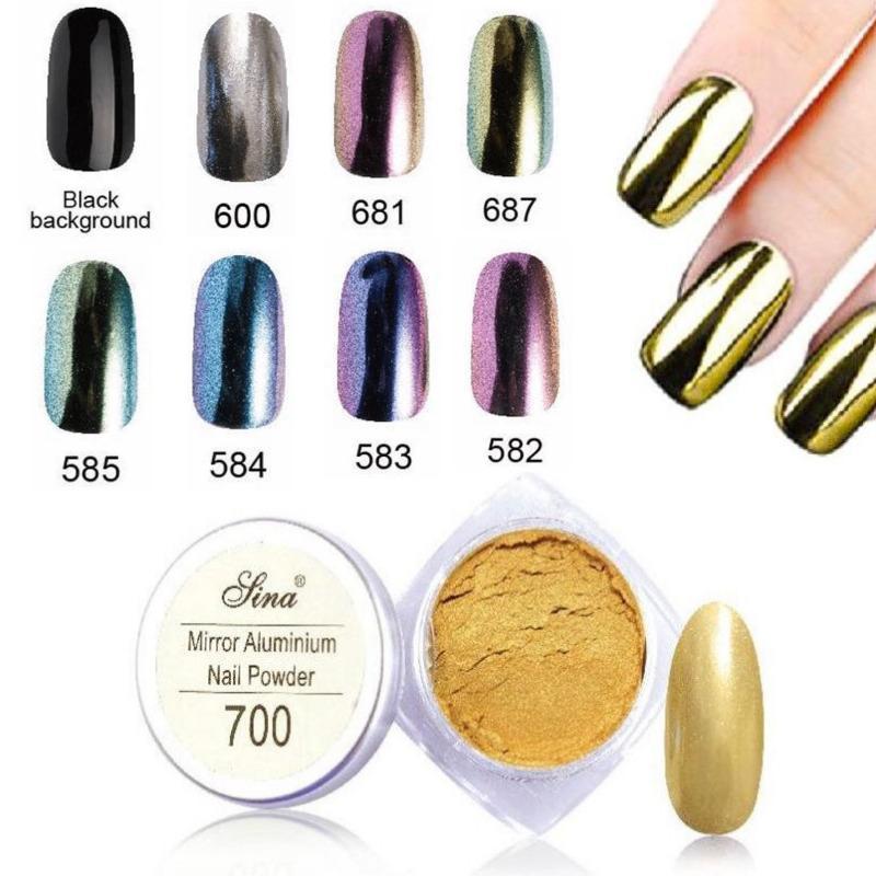 Apply the pigments by using the little brush applicator, take a bit with it and brush the pigments onto the nails, cover the nail well and brush more and in every directions to get this smooth. More you are brushing these, better your coverage and mirror effect will become. Dust off the excess of pigments with a very light touch using a soft make up brush. When the nails are ready, you can encapsulate the pigments with a layer of acrylic or builder gel for a longer wear or simply coat the nails again with a layer of the SINA tack-free topcoat. Et Voilà!