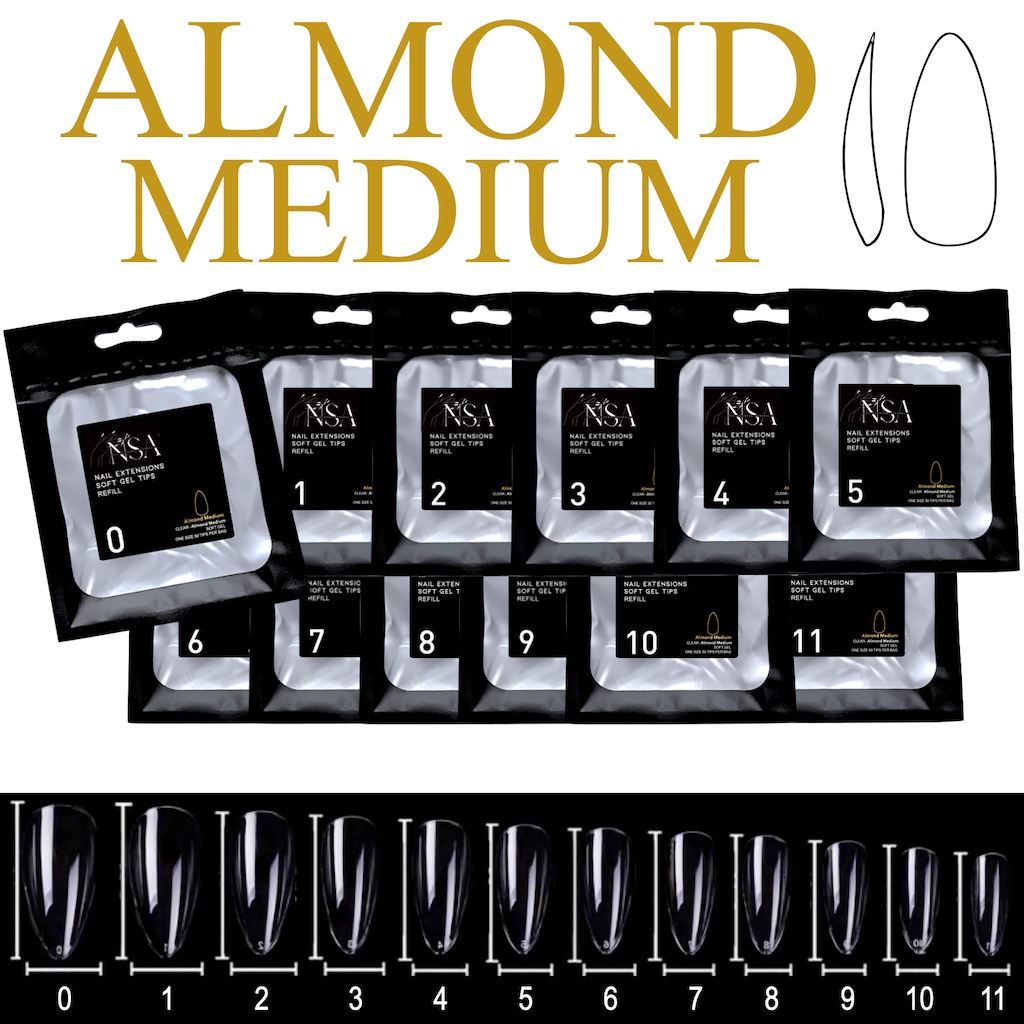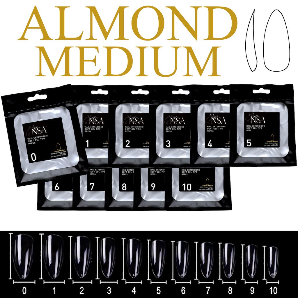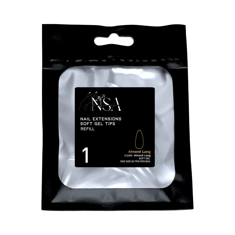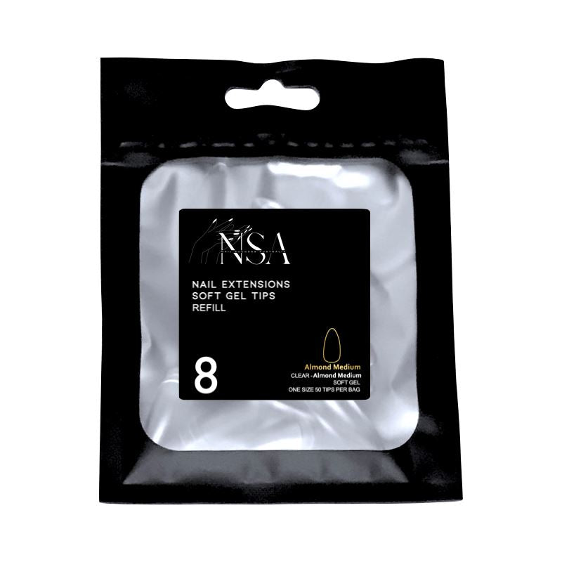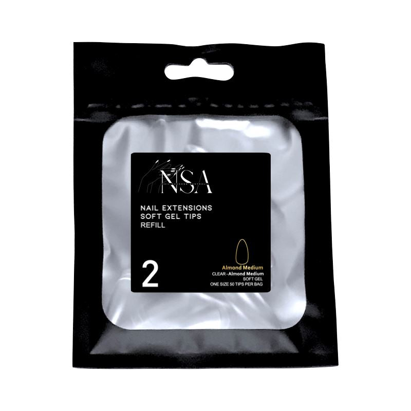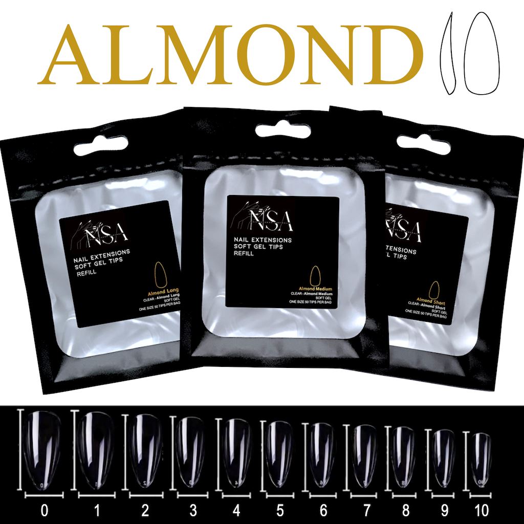 Almond Shape Individual Refill Size Bags containing 50pcs in each bag for the NSI Australia Soft Gel Tips.