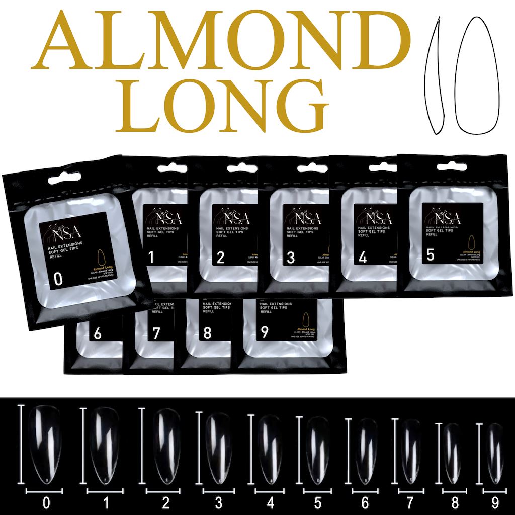 - Almond Long Clear Tips(10 Sizes from #0 to #9)