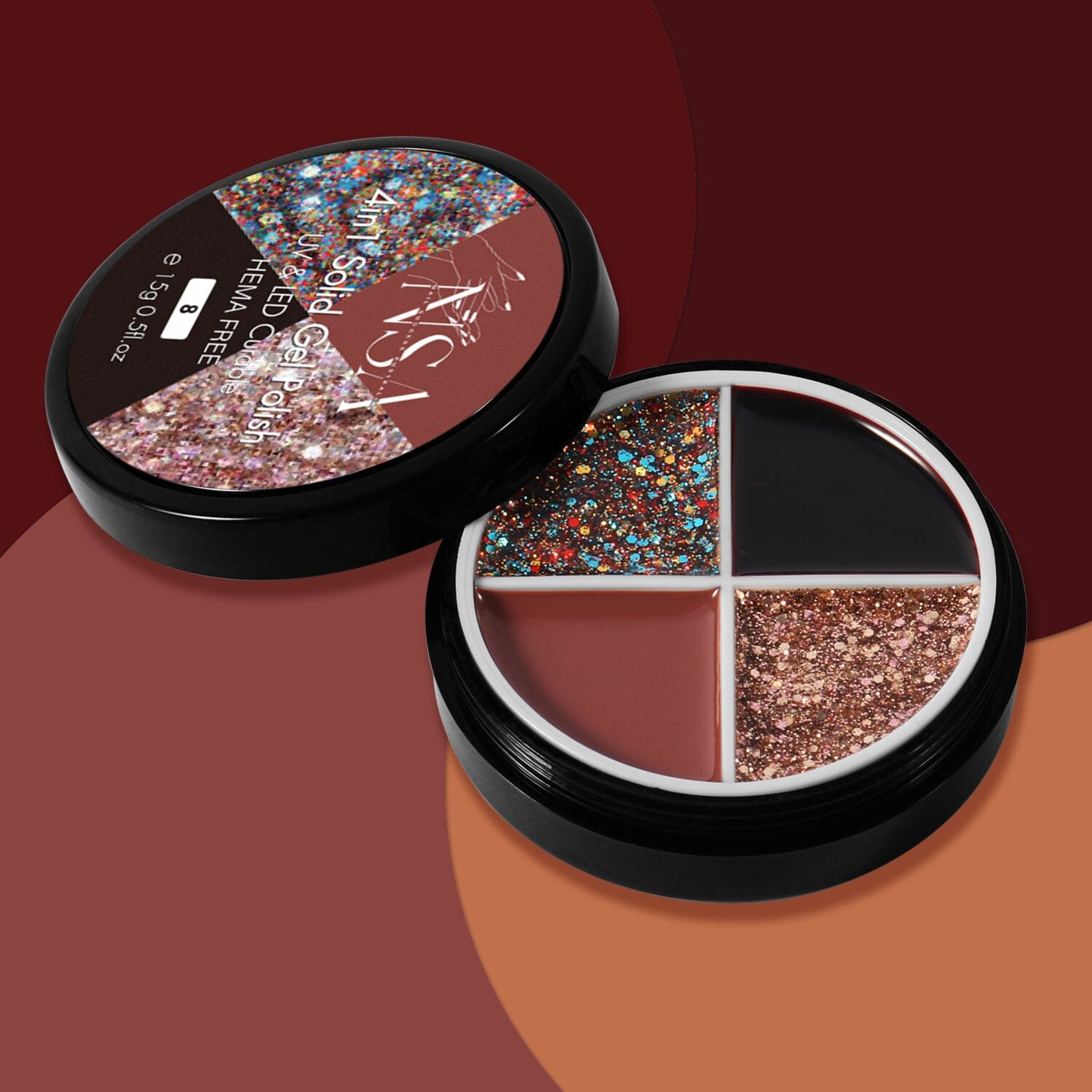 LED/UV Curable Solid Gel Polish in perfect 4in1 Colour Jar combinations!